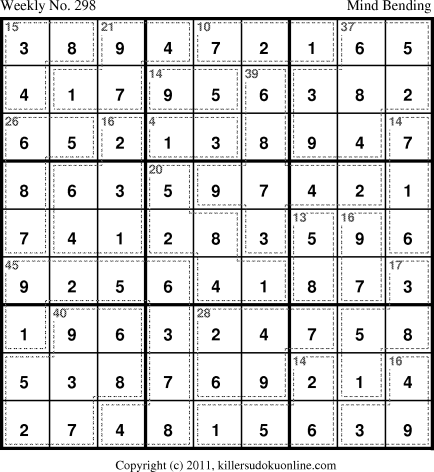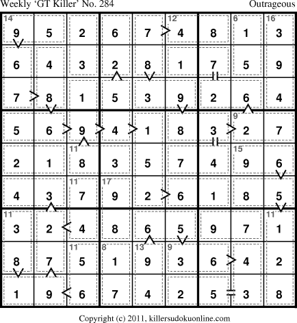 Weekly “Greater Than” Killer sudoku for week starting 9/19/2011