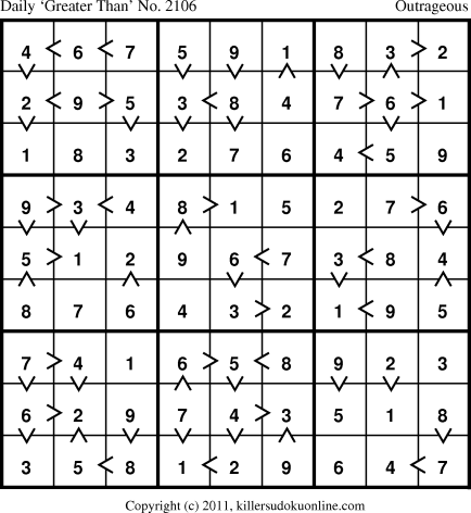 Weekly “Greater Than” Killer sudoku for week starting 1/16/2012