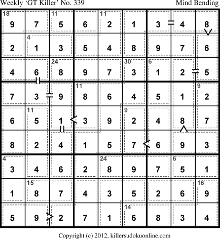 Weekly “Greater Than” Killer sudoku for week starting 10/8/2012