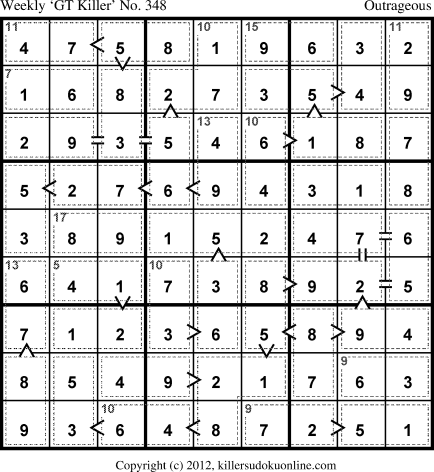 Weekly “Greater Than” Killer sudoku for week starting 12/10/2012