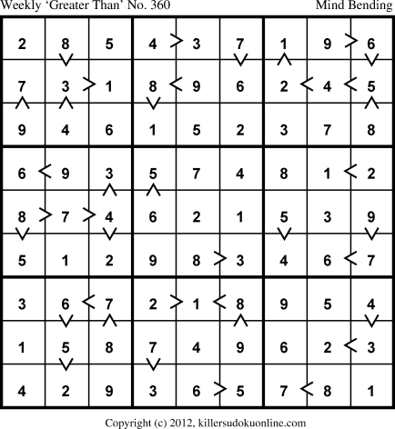 Weekly “Greater Than” Sudoku for week starting 12/10/2012