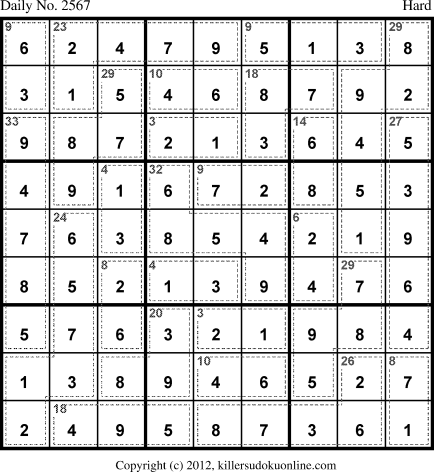 Weekly “Greater Than” Killer sudoku for week starting 12/24/2012