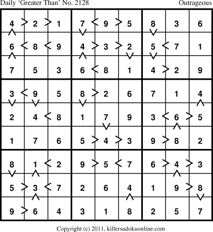 Daily “Greater Than” Sudoku for 2/10/2012