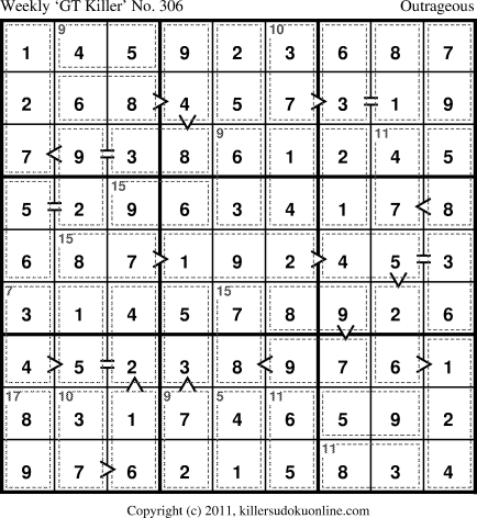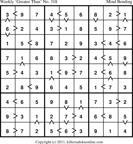 Weekly “Greater Than” Killer sudoku for week starting 2/20/2012