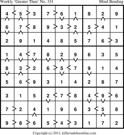 Weekly “Greater Than” Killer sudoku for week starting 5/21/2012