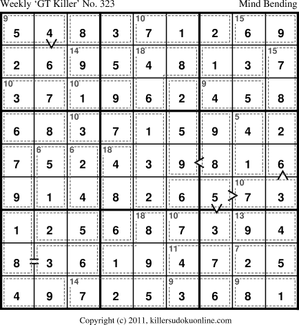 Weekly “Greater Than” Killer sudoku for week starting 6/18/2012