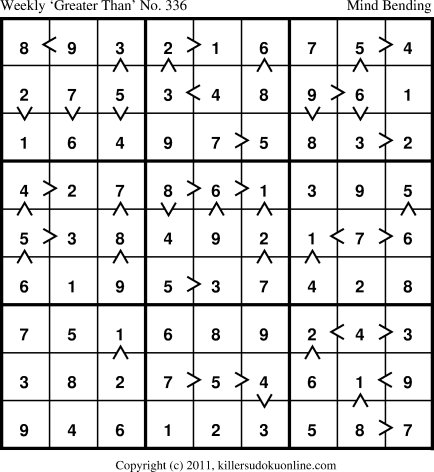 Weekly “Greater Than” Killer sudoku for week starting 6/25/2012