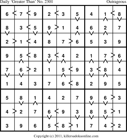 Weekly “Greater Than” Sudoku for week starting 7/30/2012