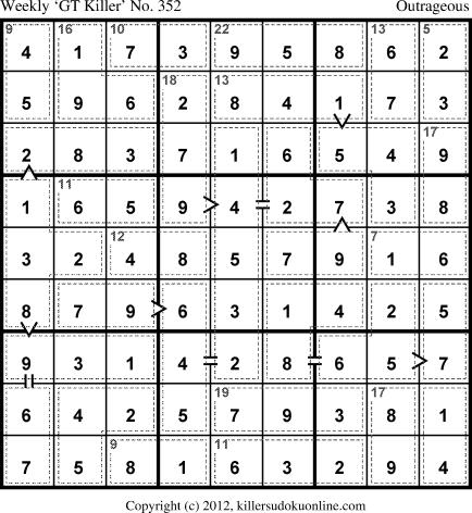 Weekly “Greater Than” Killer sudoku for week starting 1/7/2013