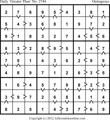 Weekly “Greater Than” Killer sudoku for week starting 10/14/2013