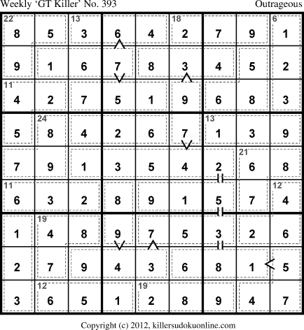 Weekly “Greater Than” Killer sudoku for week starting 10/21/2013