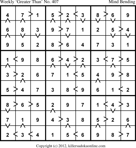 Weekly “Greater Than” Sudoku for week starting 11/4/2013