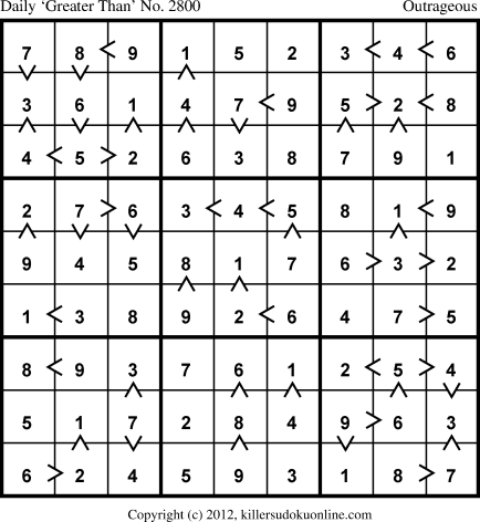 Weekly “Greater Than” Sudoku for week starting 12/9/2013