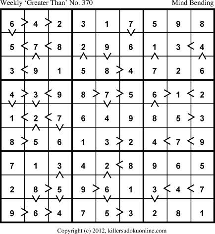 Weekly “Greater Than” Sudoku for week starting 2/18/2013