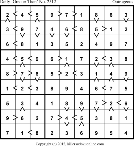 Weekly “Greater Than” Sudoku for week starting 2/25/2013