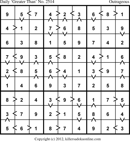 Weekly “Greater Than” Sudoku for week starting 2/25/2013