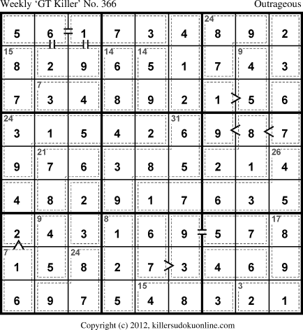 Weekly “Greater Than” Killer sudoku for week starting 4/15/2013