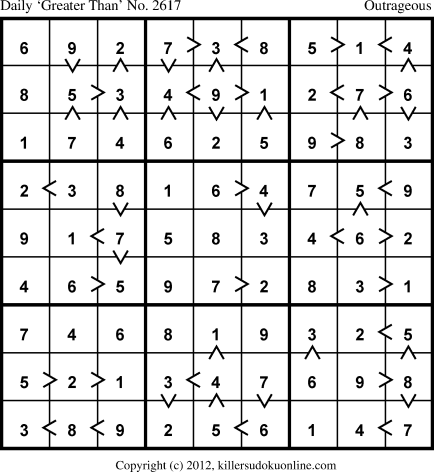 Daily “Greater Than” Sudoku for 6/13/2013