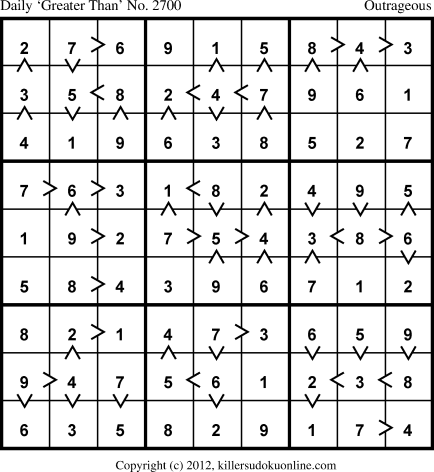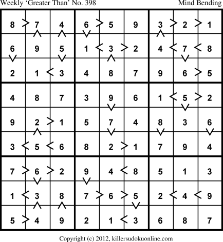 Weekly “Greater Than” Sudoku for week starting 9/2/2013