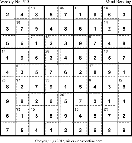 Weekly “Greater Than” Killer sudoku for week starting 11/16/2015