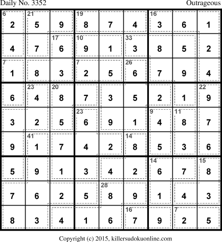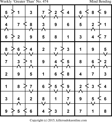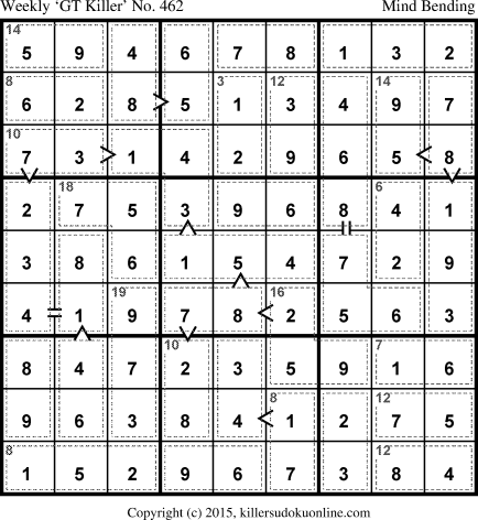 Weekly “Greater Than” Killer sudoku for week starting 2/16/2015