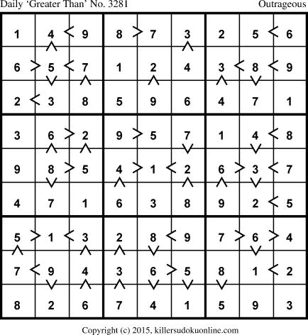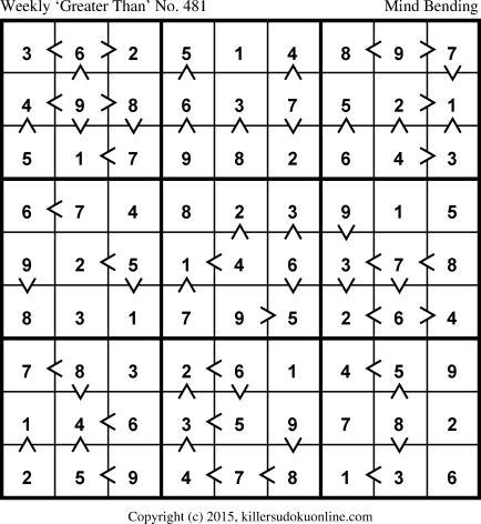 Weekly “Greater Than” Killer sudoku for week starting 4/6/2015