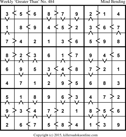 Weekly “Greater Than” Sudoku for week starting 4/27/2015