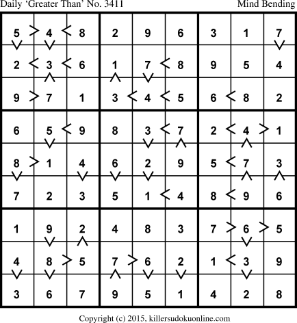 Weekly “Greater Than” Sudoku for week starting 8/10/2015