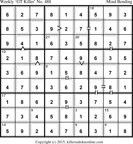 Weekly “Greater Than” Killer sudoku for week starting 8/17/2015