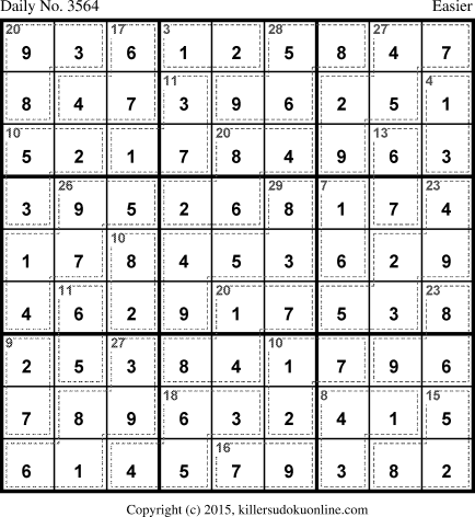 Weekly Killer Sudoku for week starting 9/21/2015