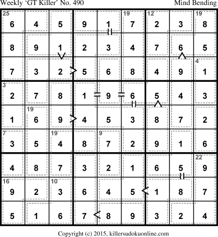 Weekly “Greater Than” Killer sudoku for week starting 8/31/2015