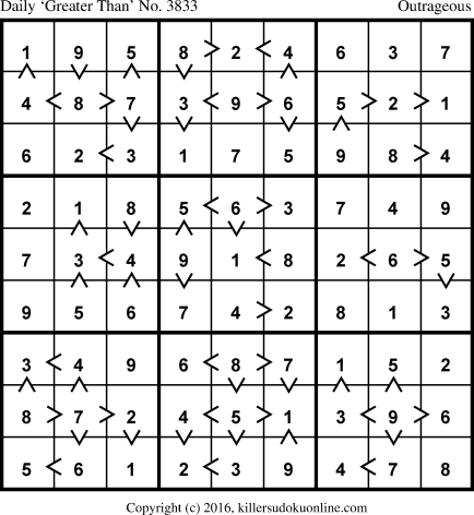 Weekly “Greater Than” Sudoku for week starting 10/10/2016