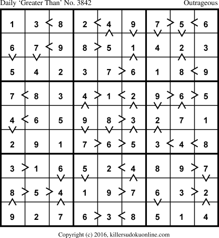 Daily “Greater Than” Sudoku for 10/20/2016