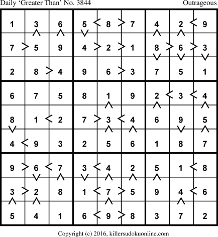 Daily “Greater Than” Sudoku for 10/22/2016