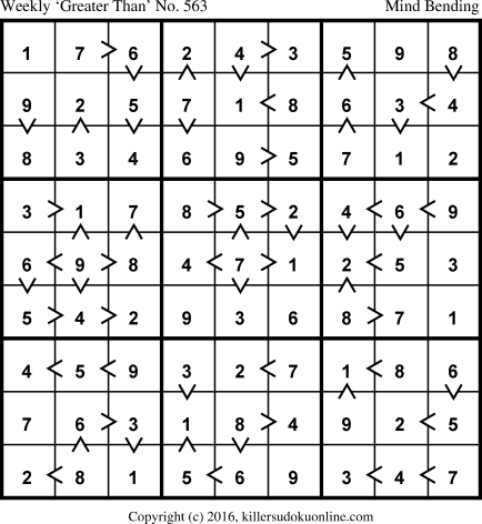 Weekly “Greater Than” Sudoku for week starting 10/31/2016