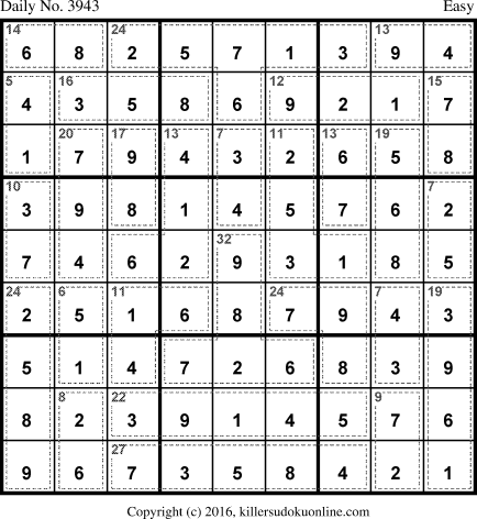 Weekly Killer Sudoku for week starting 10/3/2016