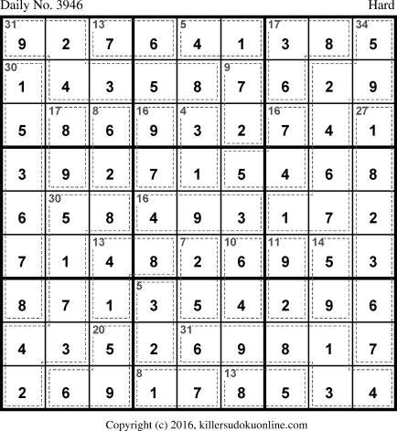 Weekly “Greater Than” Killer sudoku for week starting 10/3/2016