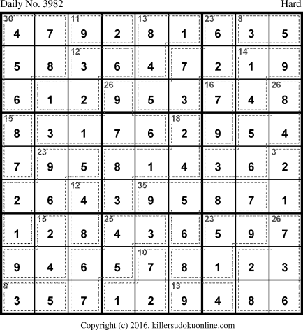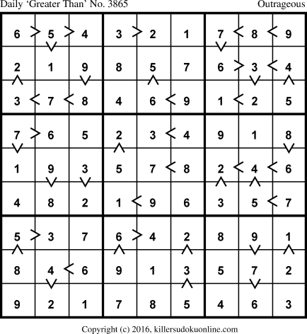 Weekly “Greater Than” Killer sudoku for week starting 11/7/2016