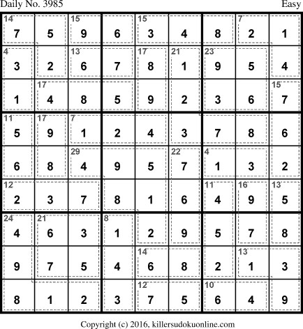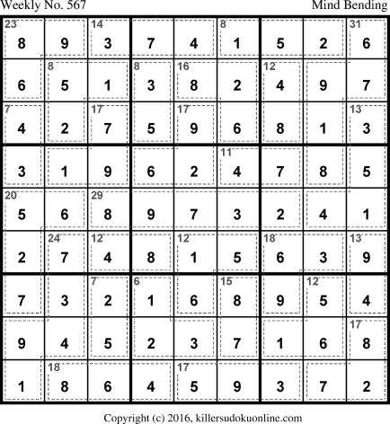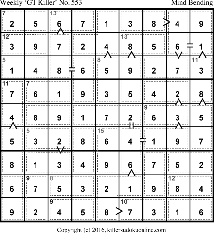 Weekly “Greater Than” Killer sudoku for week starting 11/14/2016