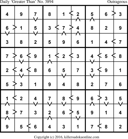 Weekly “Greater Than” Sudoku for week starting 12/5/2016