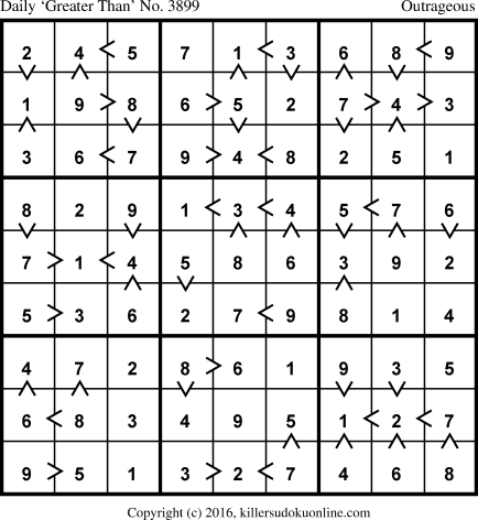 Weekly “Greater Than” Sudoku for week starting 12/12/2016