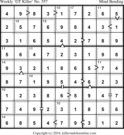 Weekly “Greater Than” Killer sudoku for week starting 12/12/2016