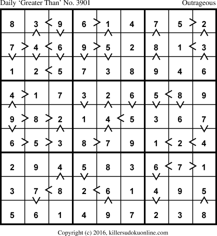 Weekly “Greater Than” Sudoku for week starting 12/12/2016
