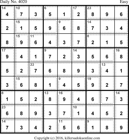 Daily Killer Sudoku for 12/20/2016