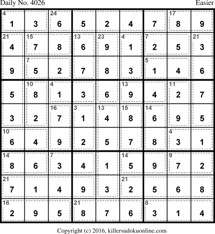 Weekly “Greater Than” Killer sudoku for week starting 12/26/2016