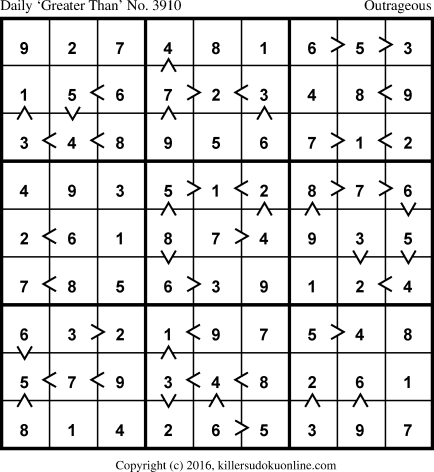 Daily “Greater Than” Sudoku for 12/27/2016