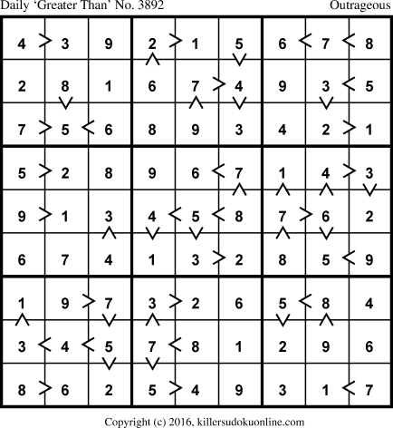 Daily “Greater Than” Sudoku for 12/9/2016