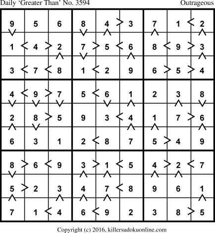 Weekly “Greater Than” Sudoku for week starting 2/15/2016