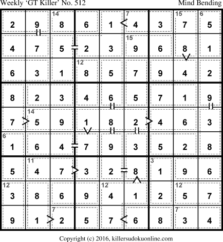 Weekly “Greater Than” Killer sudoku for week starting 2/1/2016