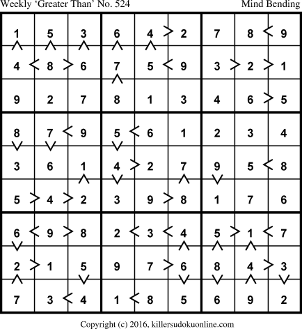 Weekly “Greater Than” Sudoku for week starting 2/1/2016